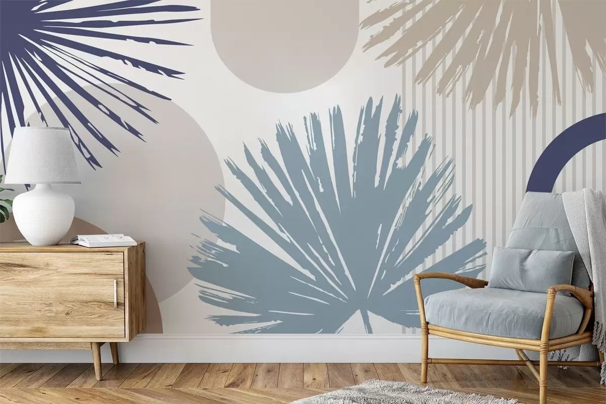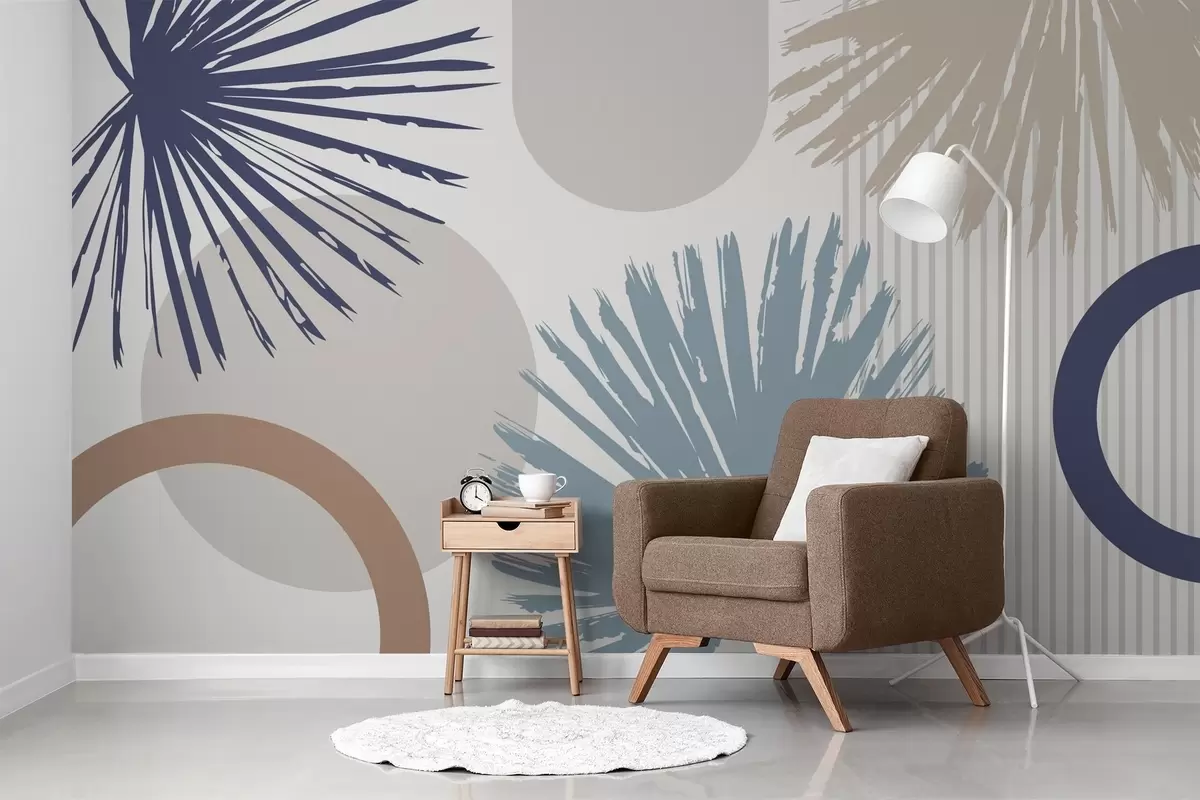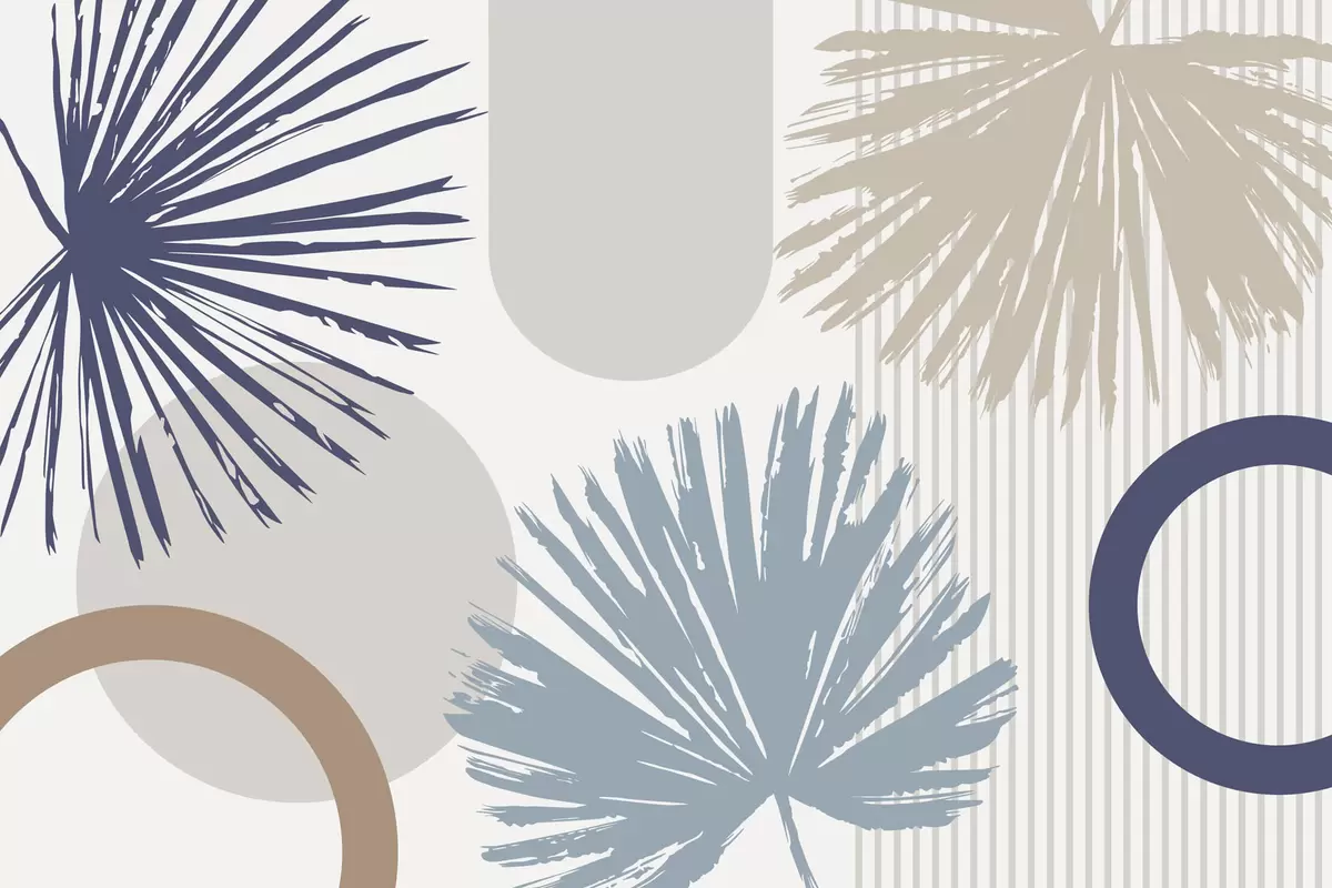 Fototapeten Abstraktion mit pflanzlichen und geometrischen Silhouetten N° w05505v1