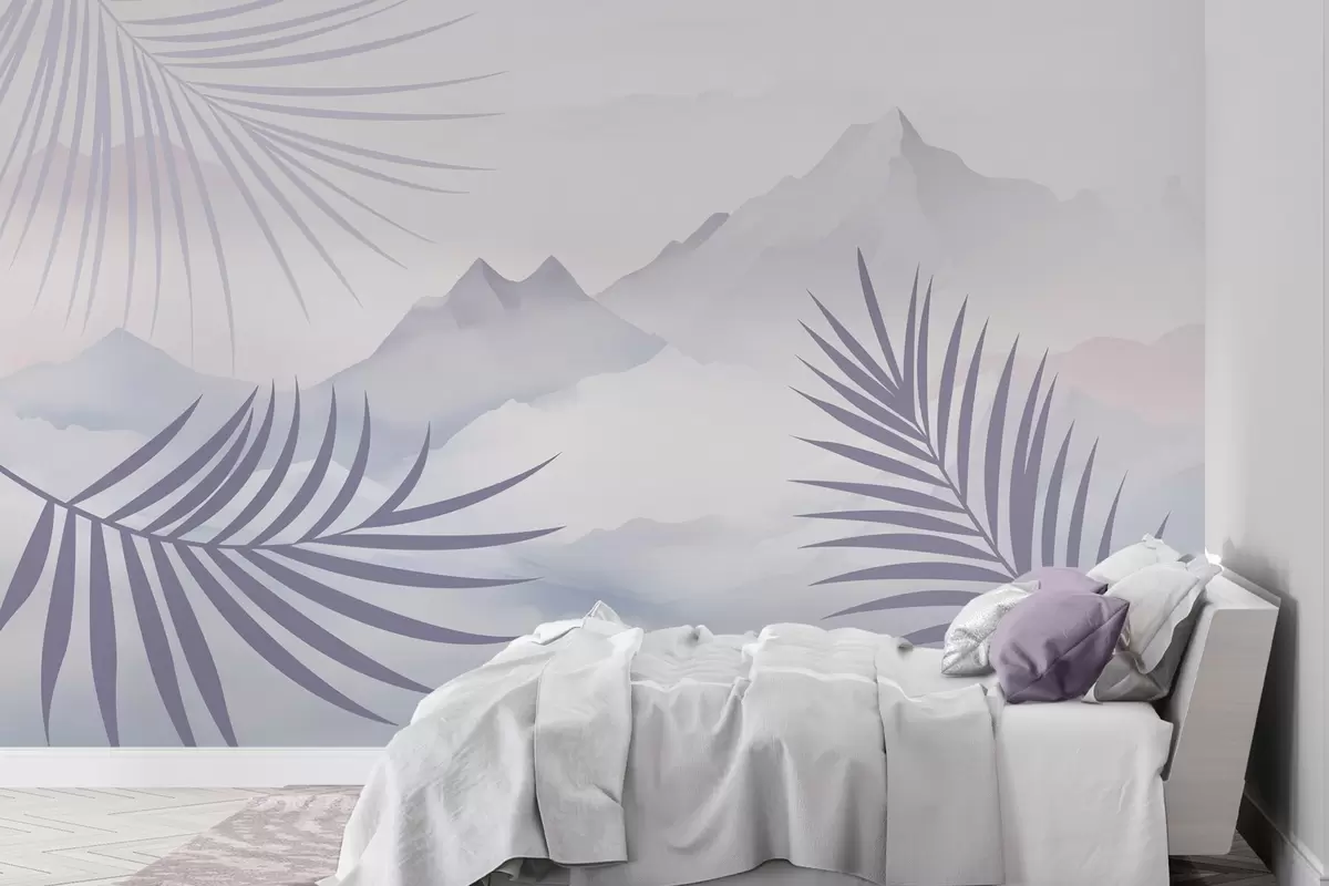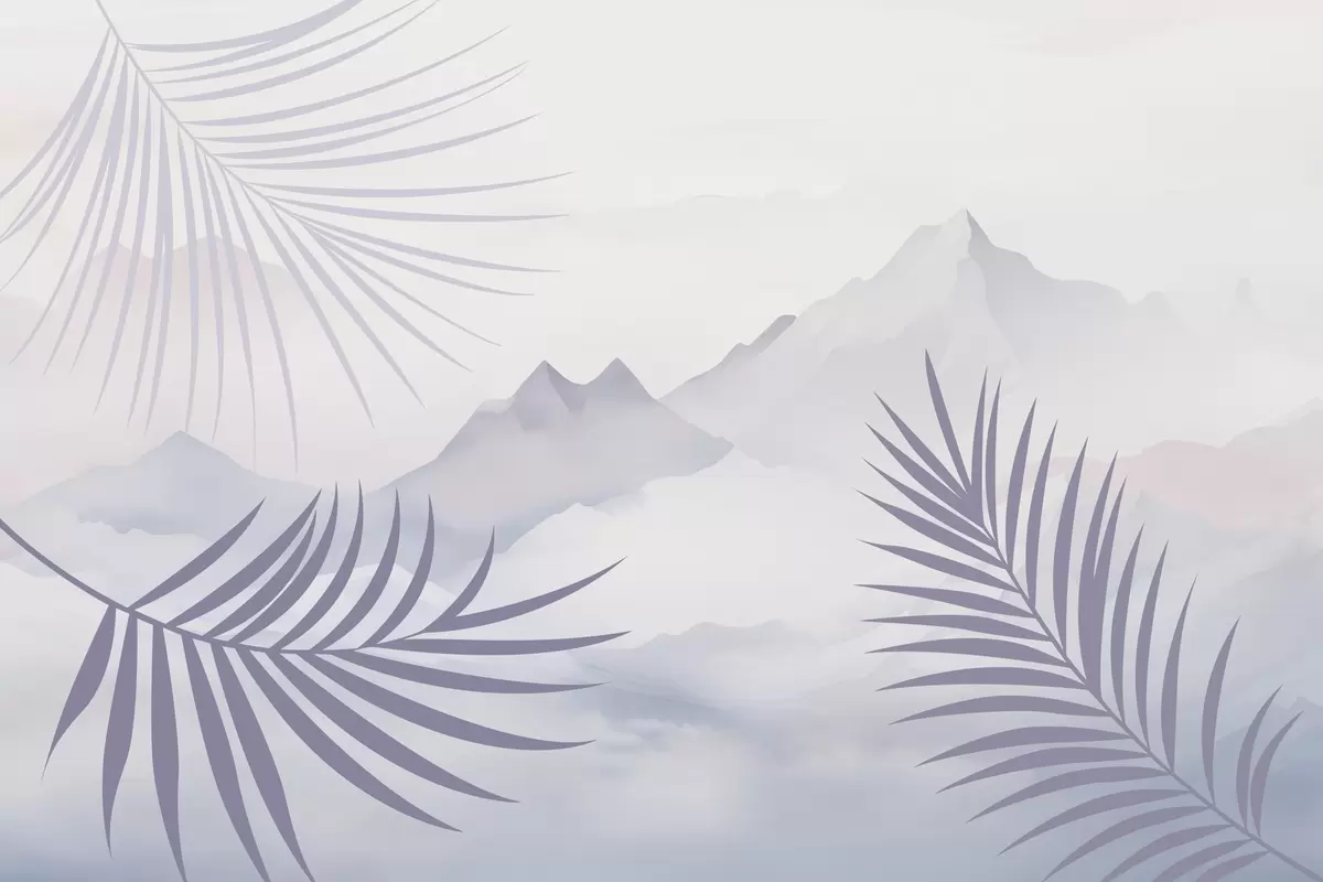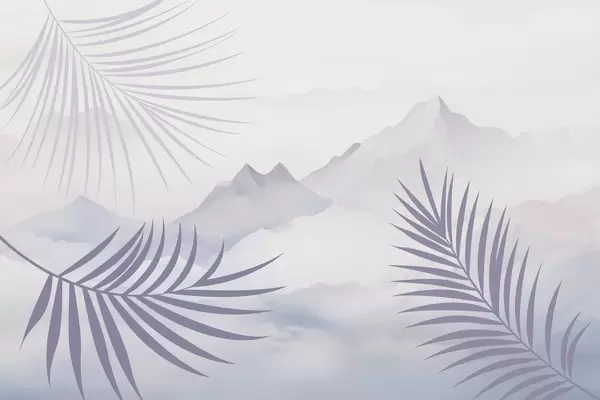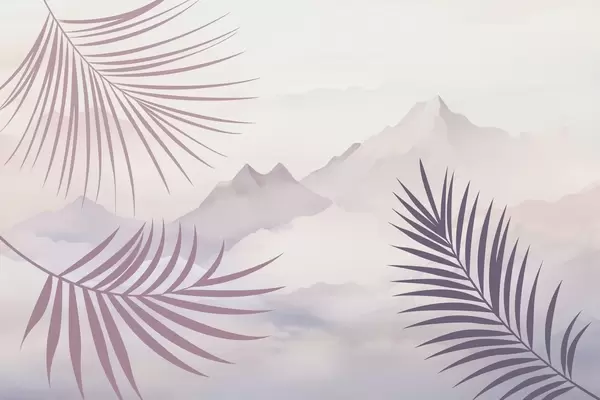 Fototapeten Palmblätter vor dem Hintergrund der Berge N° w05548