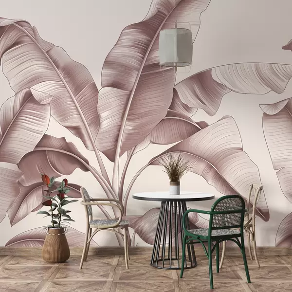 Fototapeten gezeichnete große Bananenblätter in Pastellrosa N° w07877v1