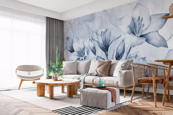 Fototapete Blaue Blumen auf blauem Hintergrund w07897