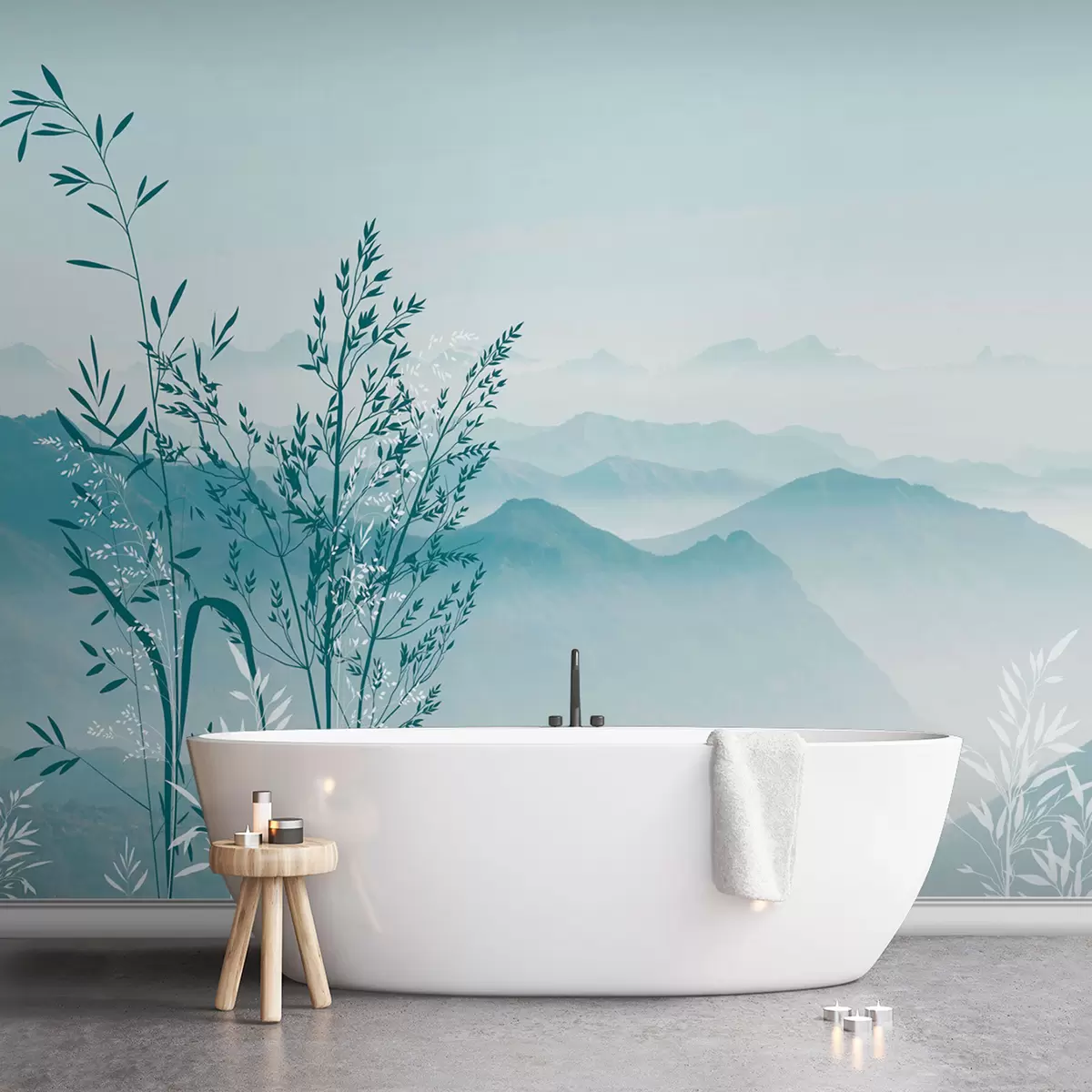 Fototapeten Bergblick mit Pflanzen und Blumen N° w07910