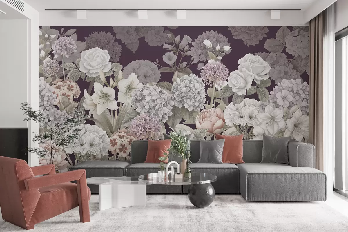 Fototapeten Zauberhafter Sommergarten auf purpurrotem Hintergrund N° w08140v2