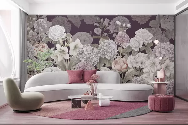 Fototapeten Zauberhafter Sommergarten auf purpurrotem Hintergrund N° w08140v2