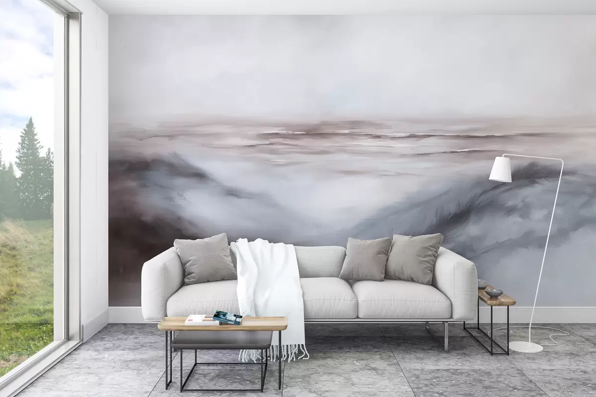 Fototapeten Abstrakte Landschaft in Pastellfarben, Pinselstrichen, Strand, Meer, graue Farbpalette N° w08141