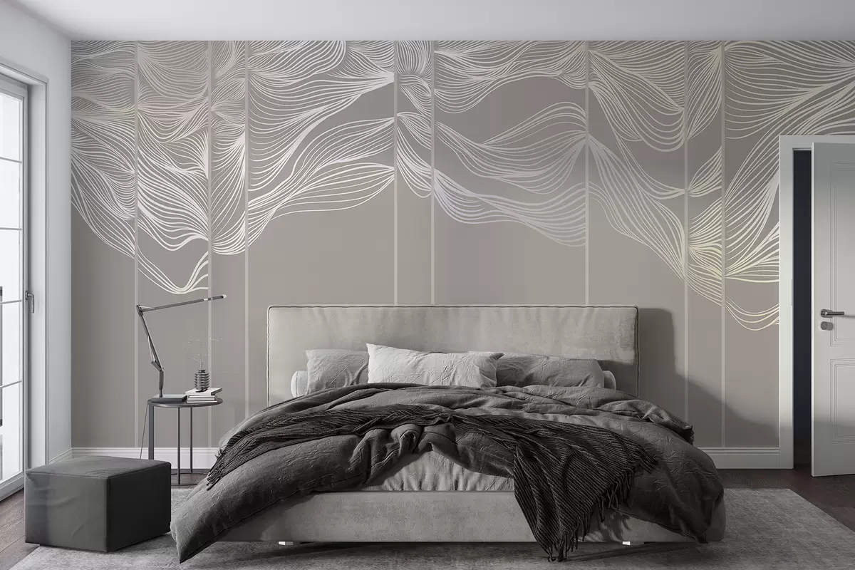Fototapeten Fließende weiße abstrakte Linie Wellen gegen einen hellbraunen Hintergrund N° w08263