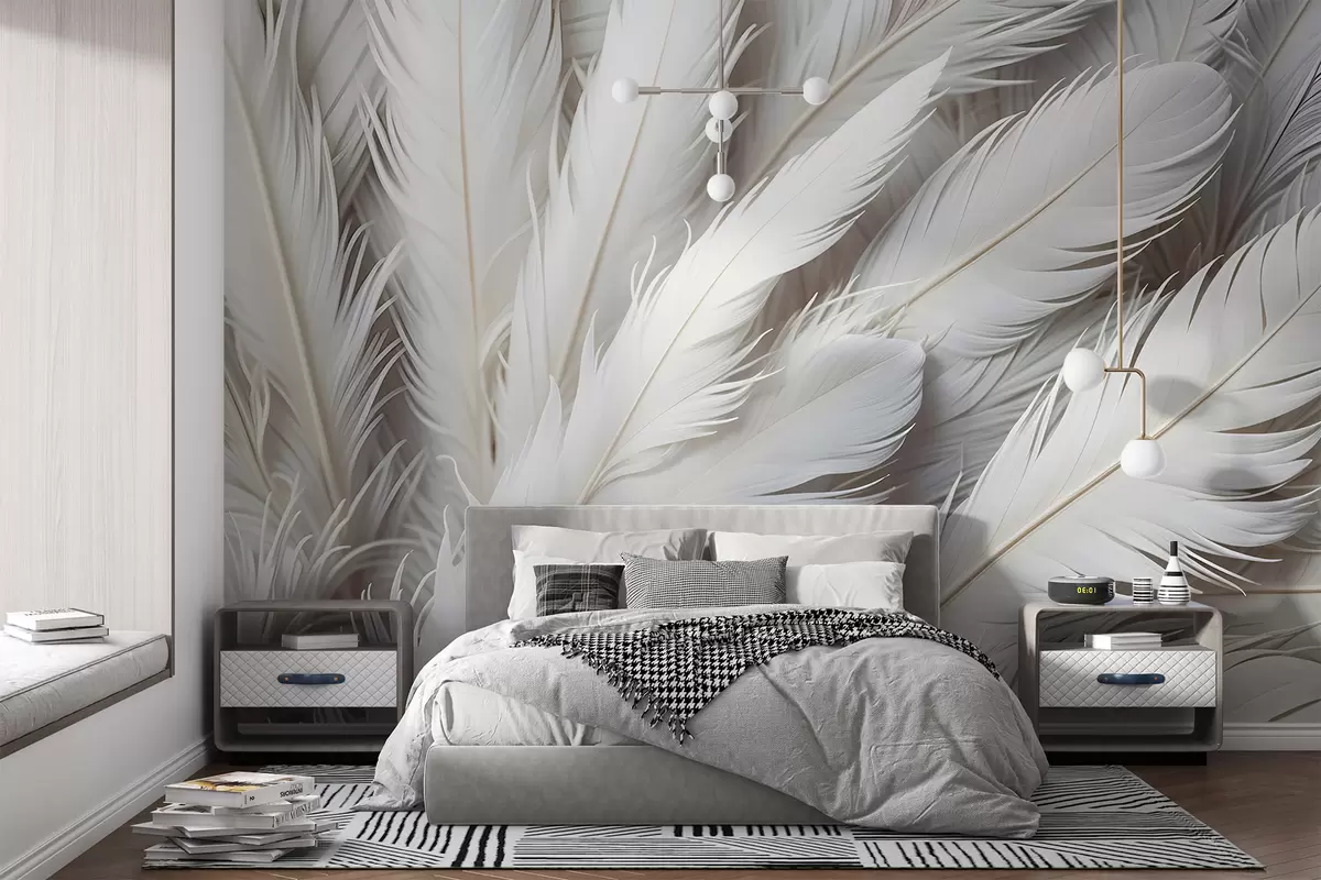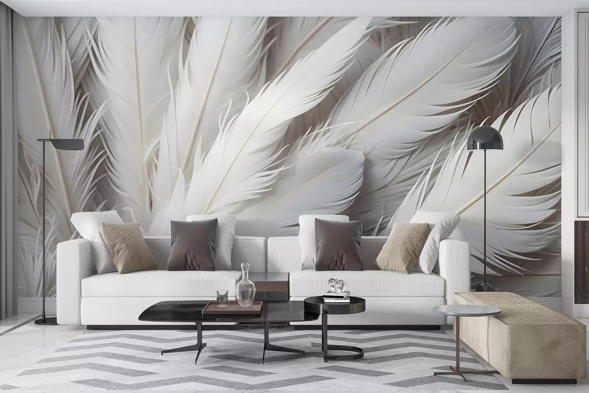 Fototapeten Weiche, flauschige weiße Federn mit einer zarten, wispy Textur auf einem hellen Hintergrund N° w08319
