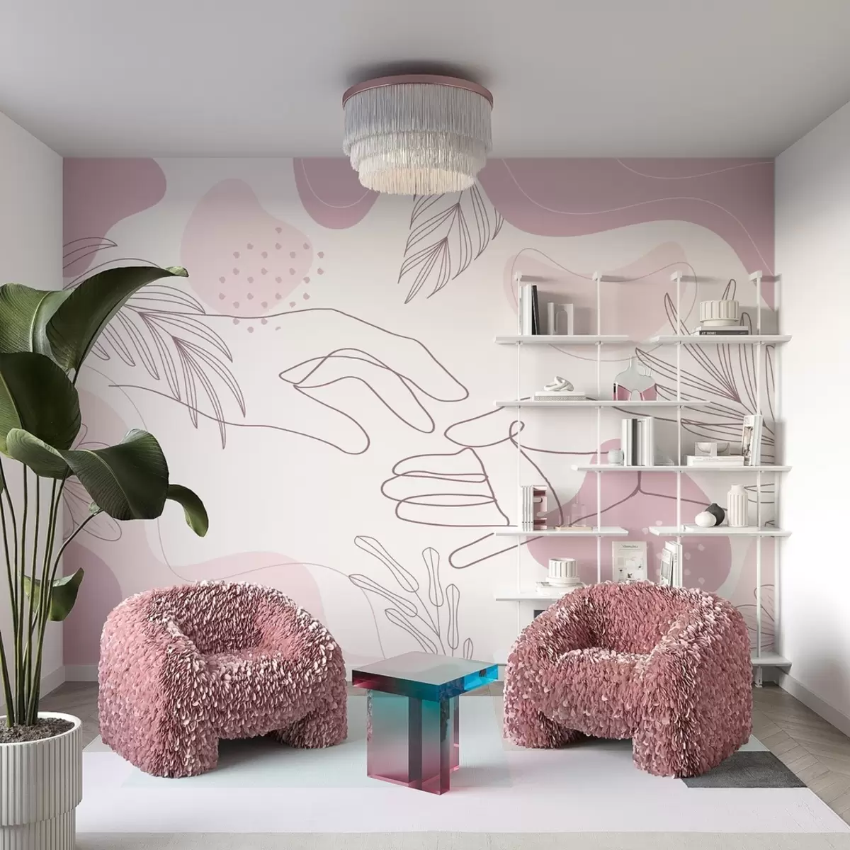 Fototapeten Vektor, lineare Hände, Punkte, rosa Farbe N° w08353v1