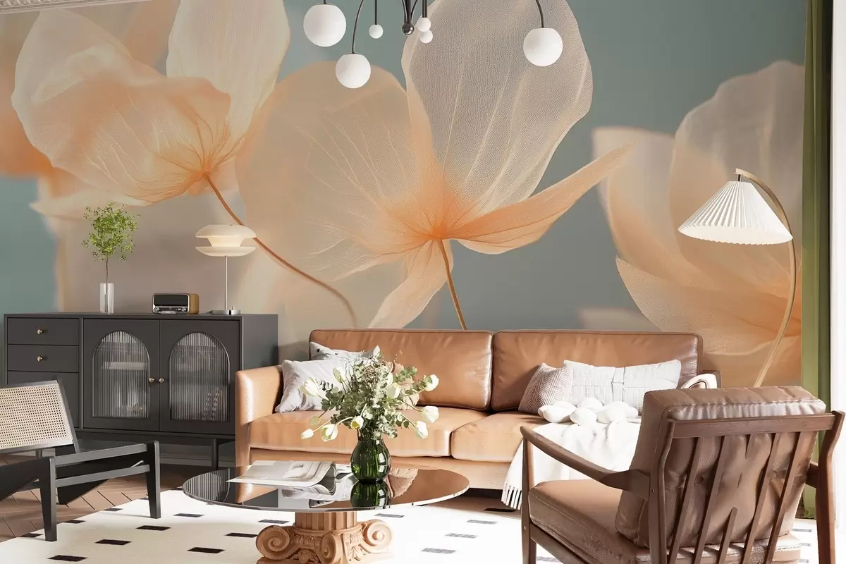 Fototapeten Lotusblüten, eine zarte Komposition mit blauem Hintergrund N° w08500