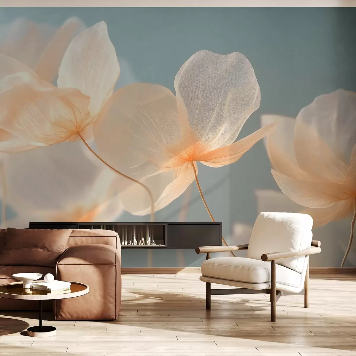 Fototapeten Lotusblüten, eine zarte Komposition mit blauem Hintergrund N° w08500
