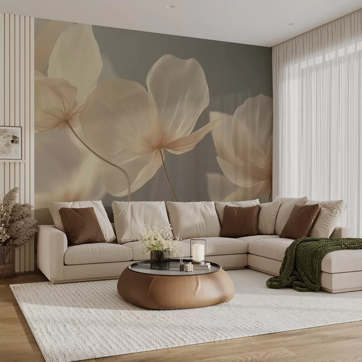 Fototapeten Lotusblüten, eine zarte Komposition mit grauem Hintergrund N° w08500v2