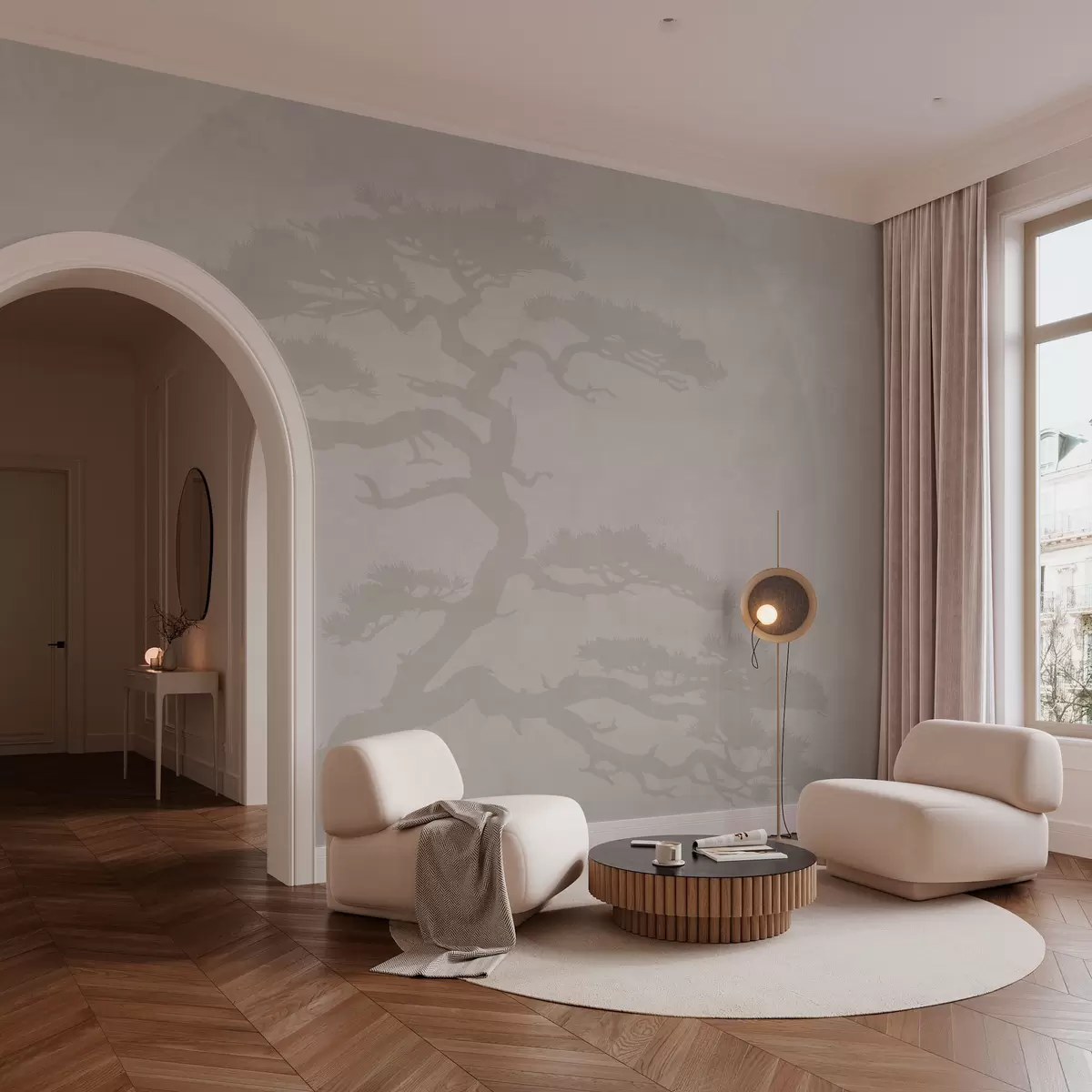 Fototapeten Japanischer Bonsaibaum und Geometrie Grunge-Hintergrund N° w08554v1