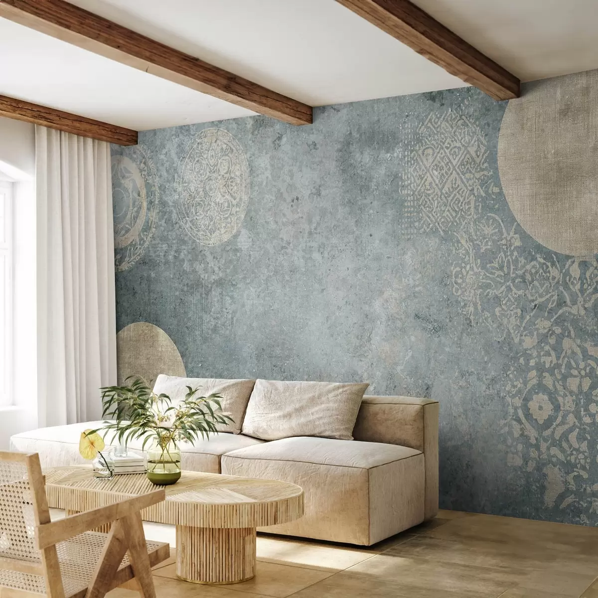 Fototapete Gelbe Kreise auf einem gealterten Hintergrund w08627