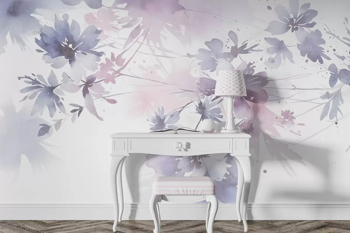 Fototapeten Weiche, pastellfarbene, abstrakt strukturierte Blumen mit verschwommenem Hintergrund, die eine verträumte, ätherische Atmosphäre schaffen N° w08645