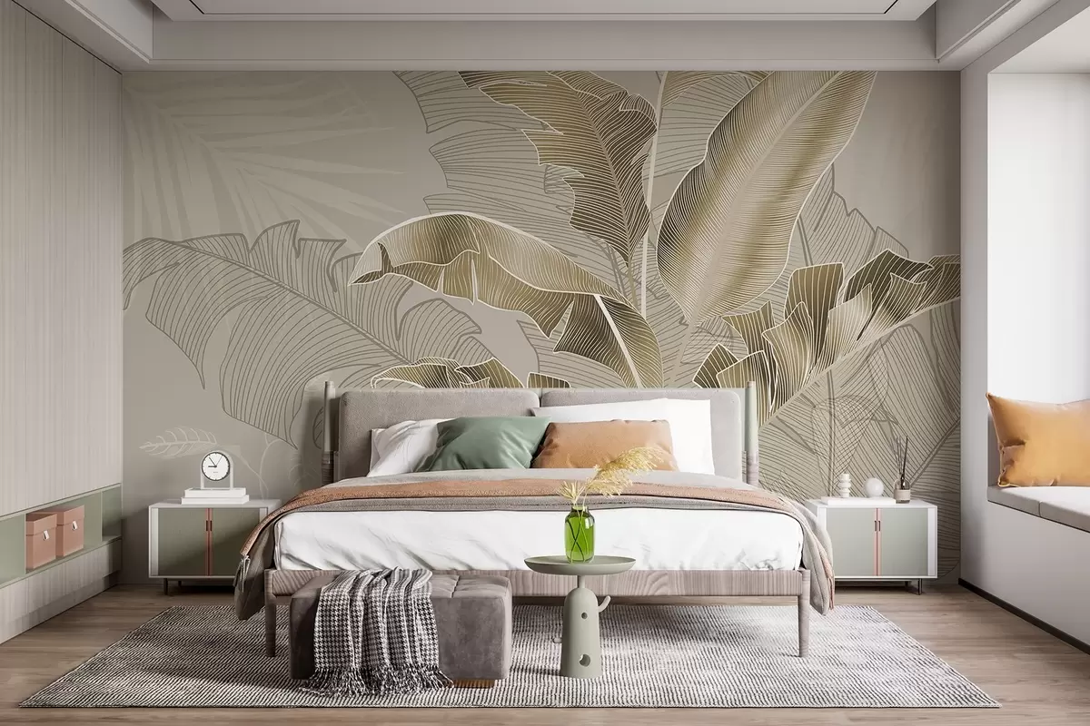 Fototapeten Eine harmonische Komposition aus tropischen Blättern in Beige- und Brauntönen mit detaillierter Linienführung N° w08698