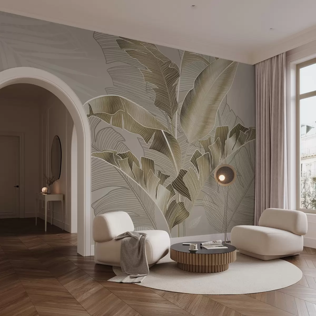 Fototapeten Eine harmonische Komposition aus tropischen Blättern in Beige- und Brauntönen mit detaillierter Linienführung N° w08698