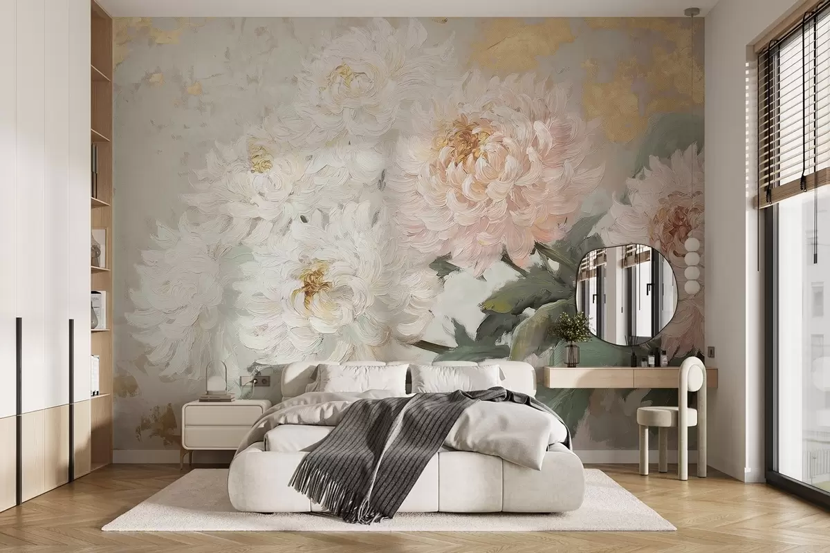 Fototapete Zarte Chrysanthemen im Acryl-Stil w08766