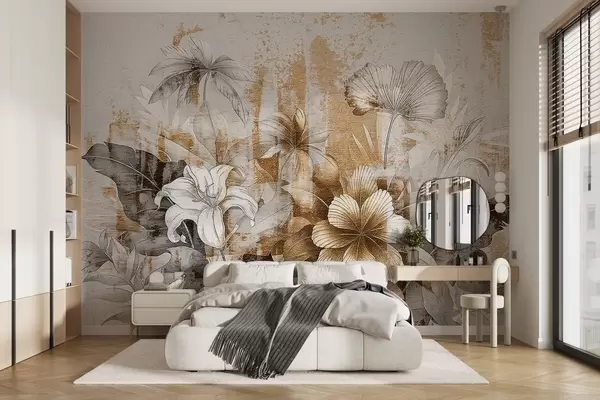 Fototapeten Vintage-Design mit exotischen Blumen und Pflanzen N° w08767