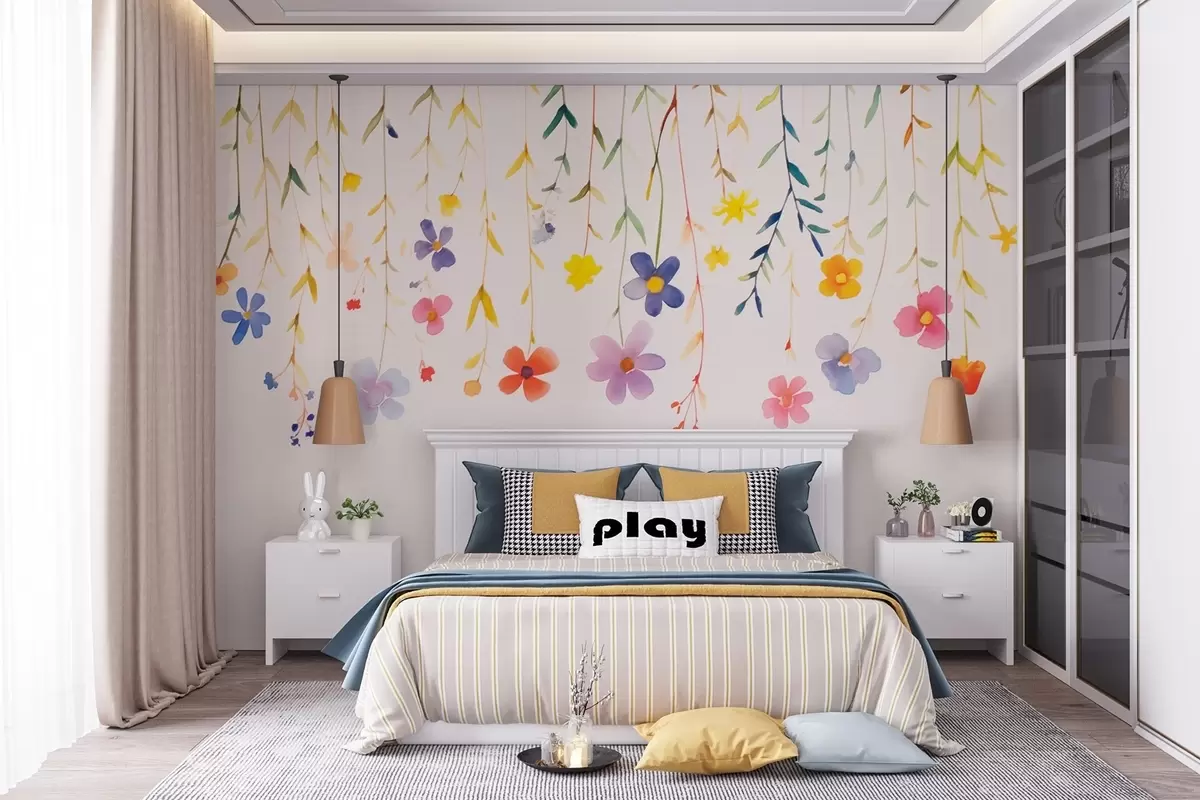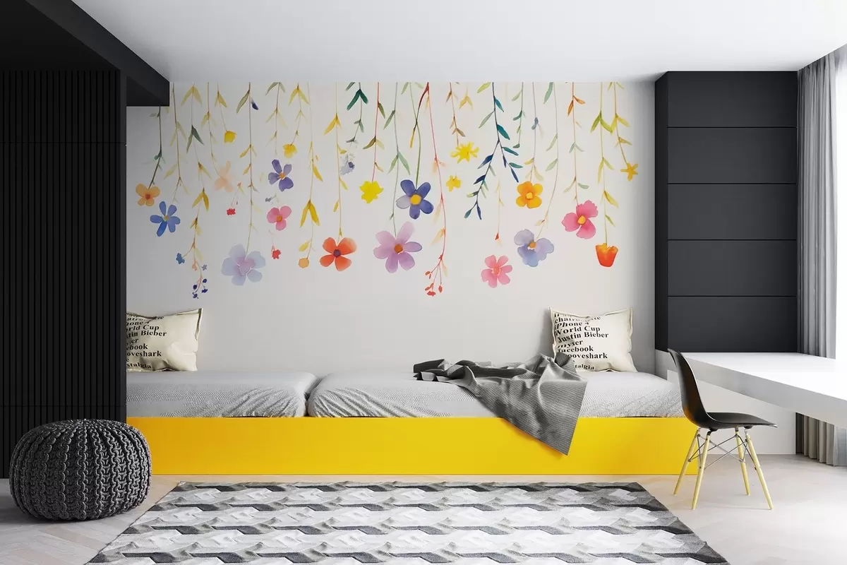 Fototapeten Wildblumen im Aquarellstil, einfach und bunt N° w08851