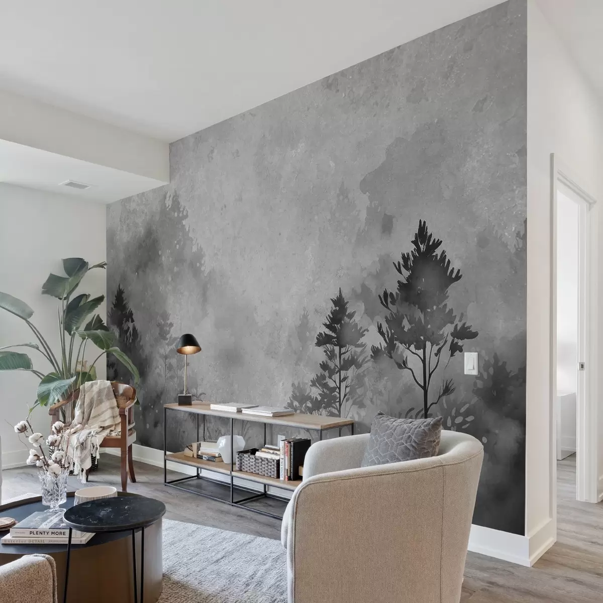 Fototapeten Wald, Imitation Aquarell in schwarz-weißem Stil N° w08862v1