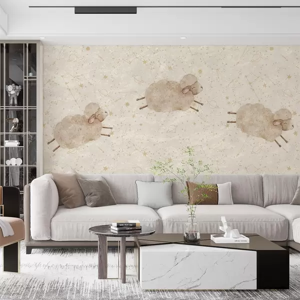 Fototapeten Springende Schafe vor einem Sternenhintergrund N° w08930