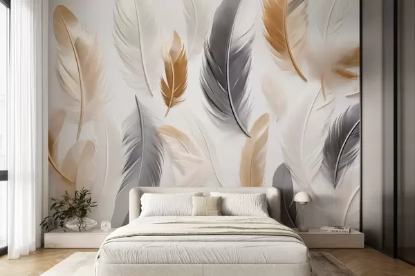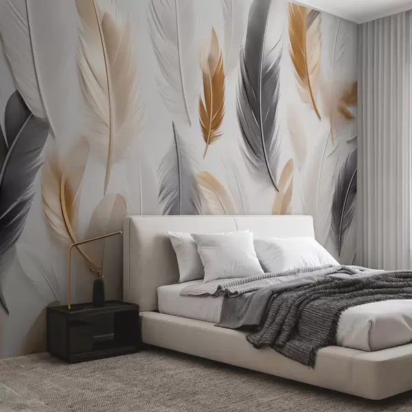 Fototapeten Beige-graue Federn in sanften, ruhigen Tönen N° w08955
