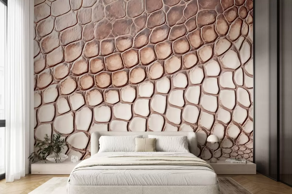 Fototapeten Weiß-braune Reptilienhaut, Schuppenmuster N° w08957