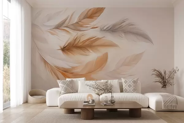 Fototapeten Schwebende luftige braun-graue Federn N° w08968