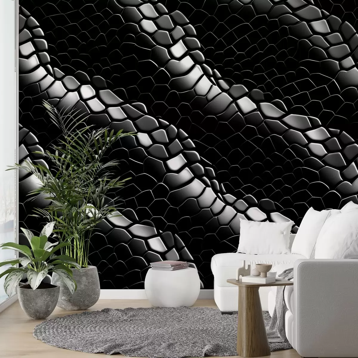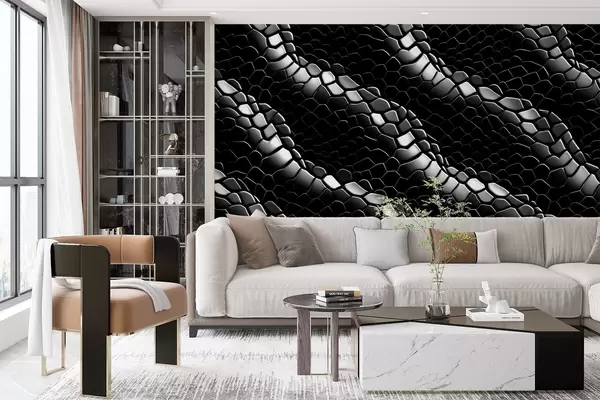 Fototapeten Schwarze und weiße Wellen in der Textur von Schlangenhaut N° w08995