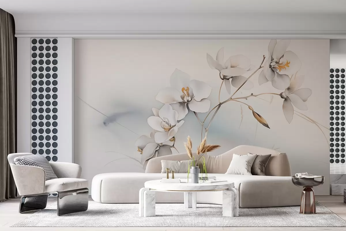 Fototapete Weißer Orchideenzweig im Aquarellstil w09022