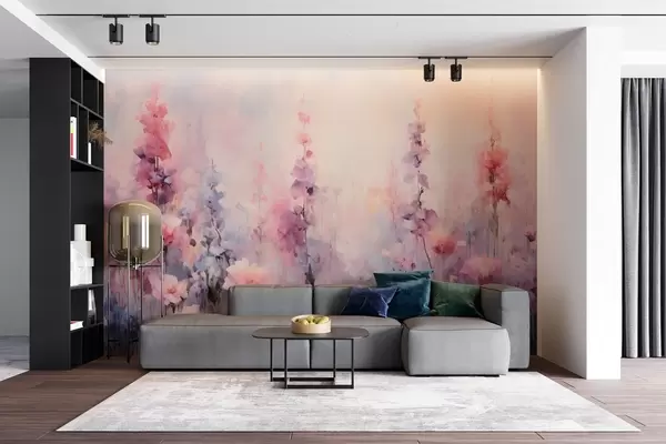 Fototapeten Bunte Wildblumen im Aquarellstil: Flieder, Mohn, Gänseblümchen N° w09038