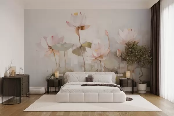 Fototapeten Zarte Lotosblumen mit Acryl gemalt N° w09067