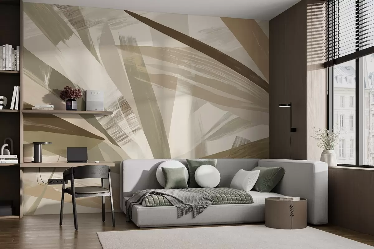 Fototapeten Abstrakte Blätter in Grün- und Beigetönen N° w09091