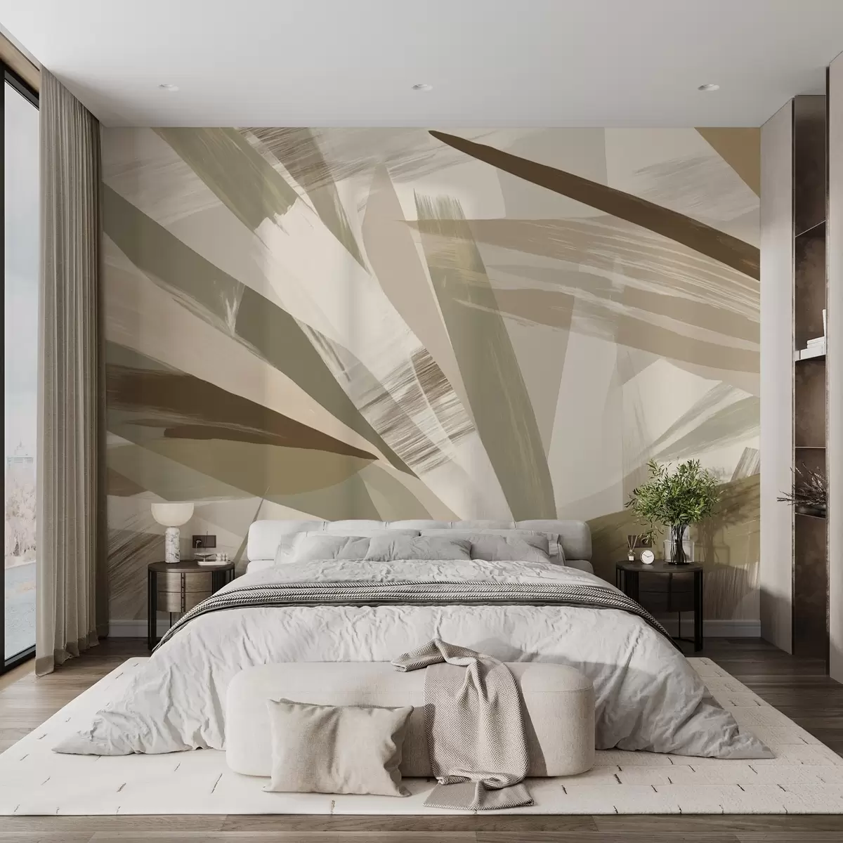Fototapeten Abstrakte Blätter in Grün- und Beigetönen N° w09091