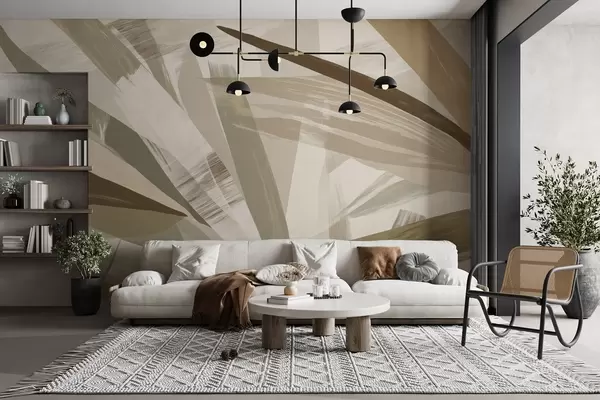 Fototapeten Abstrakte Blätter in Grün- und Beigetönen N° w09091