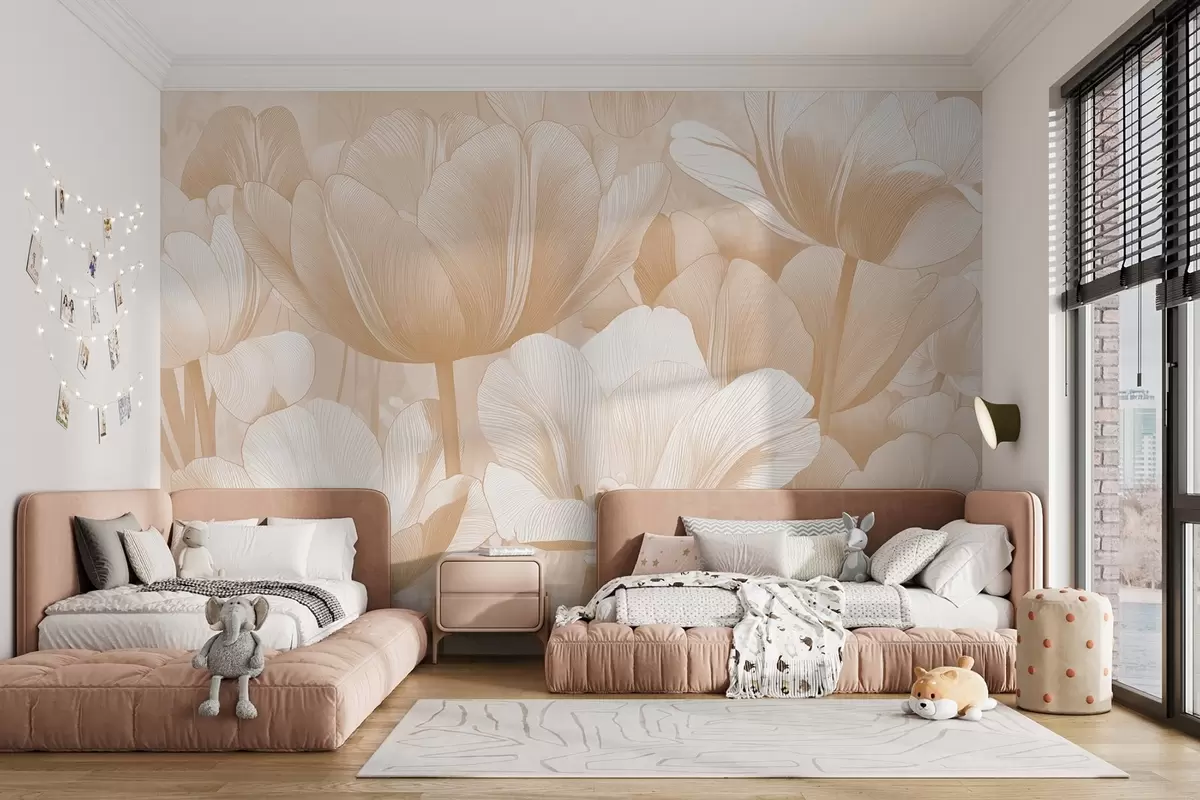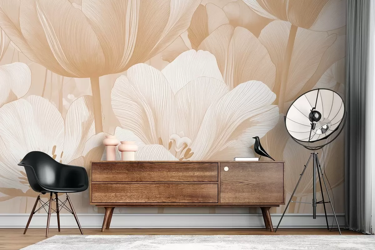 Fototapeten Beigefarbene Mohnblumen in hellen Tönen N° w09099