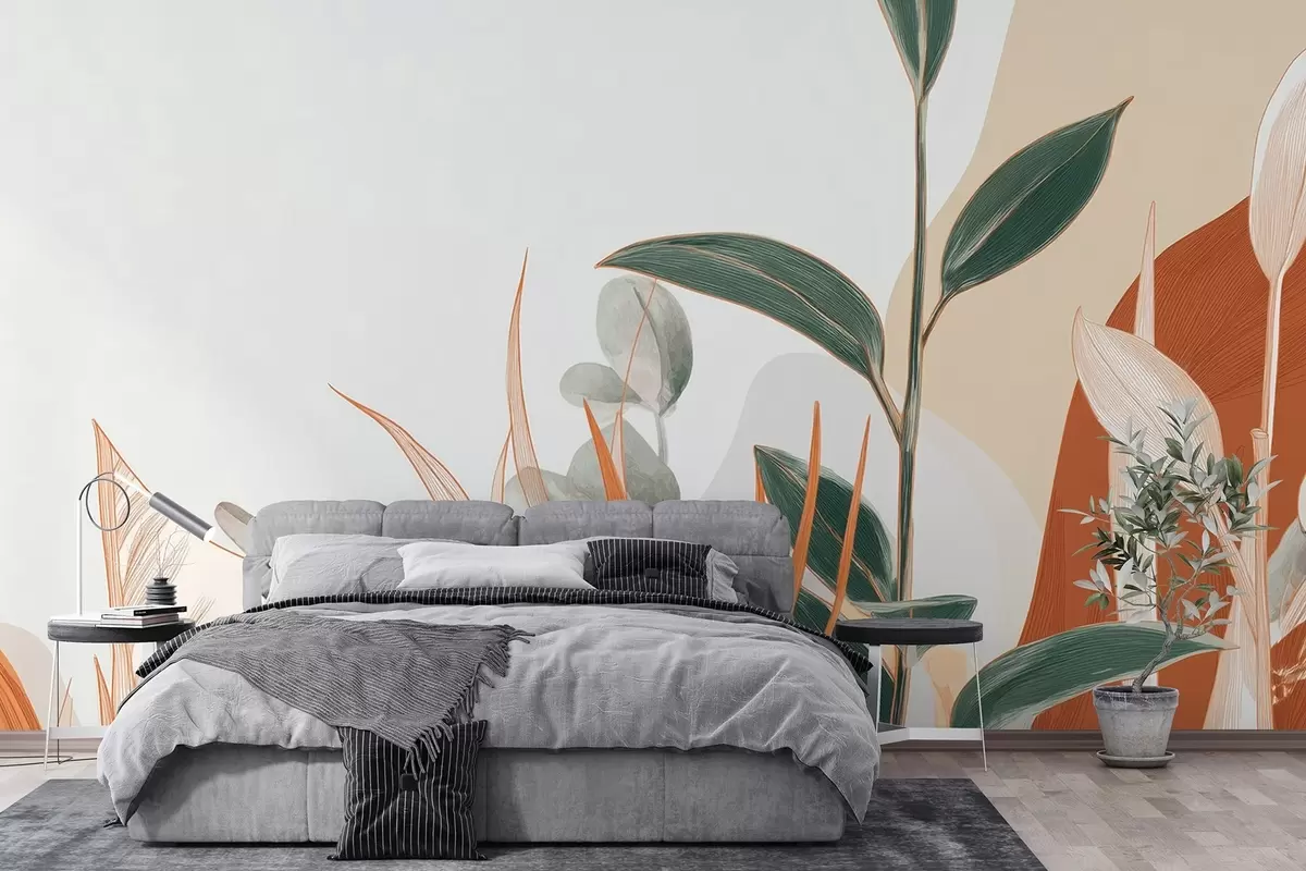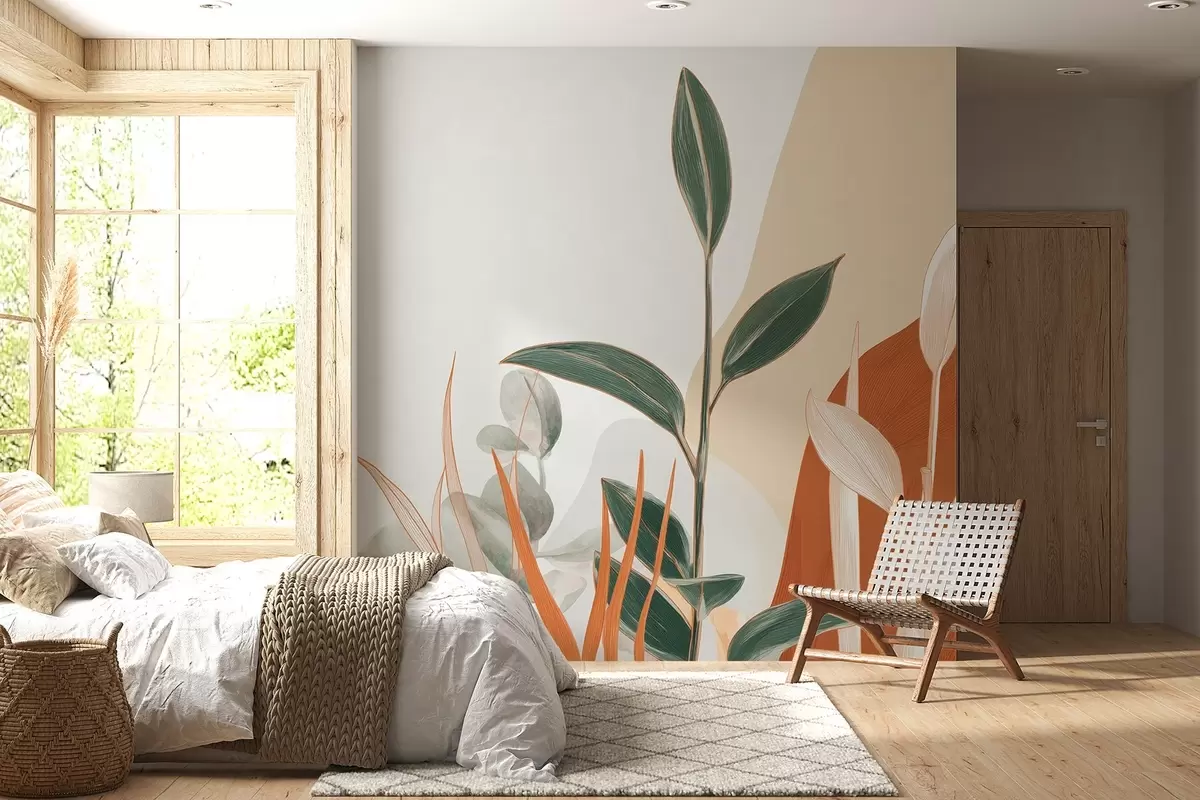Fototapeten Blätter in Beige- und Grüntönen N° w09101