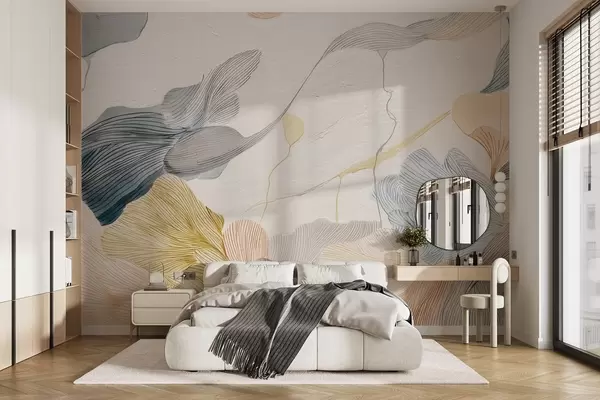 Fototapeten Abstrakte grafische Blätter in warmen und kühlen Pastelltönen N° w09222v1