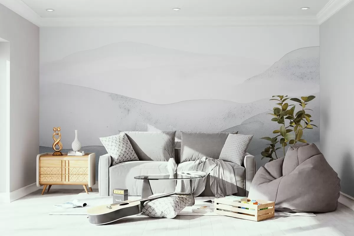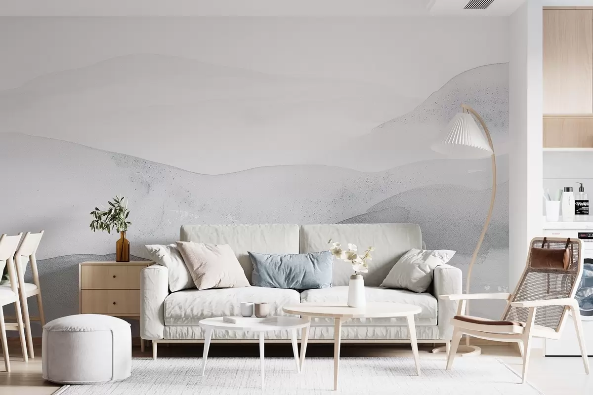 Fototapeten Minimalistische neblige Berge in sanften Blautönen N° w09223v2