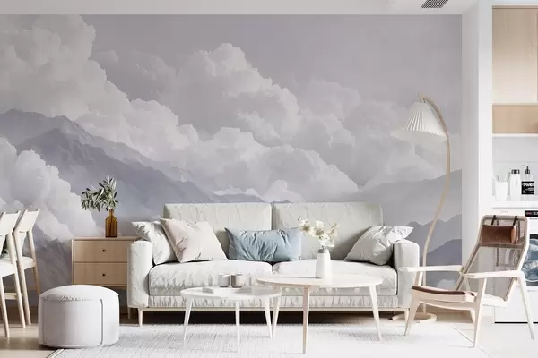Fototapeten Sanfte Wolken über Bergen in Blautönen N° w09226v2