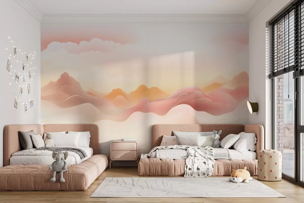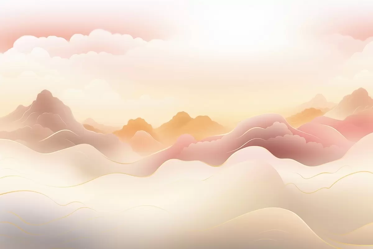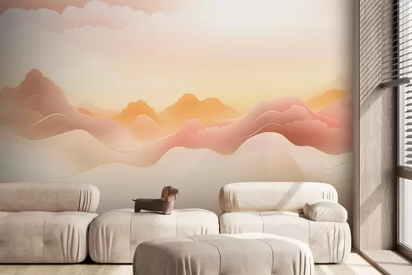 Fototapeten Neblige Berge unter einem warmen Sonnenaufgang N° w09242