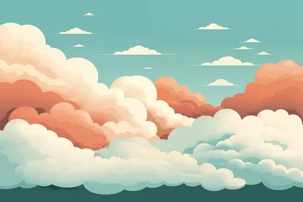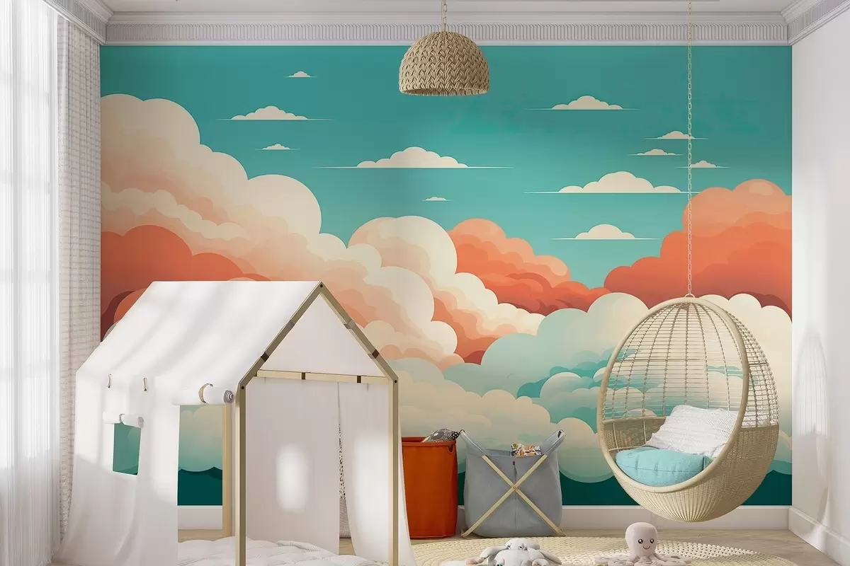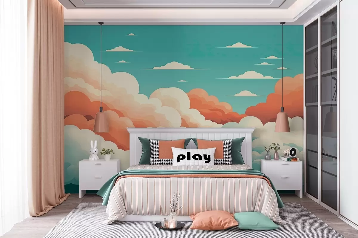 Fototapeten Skurrile Wolken im Cartoon-Stil unter einem blauen Himmel N° w09246