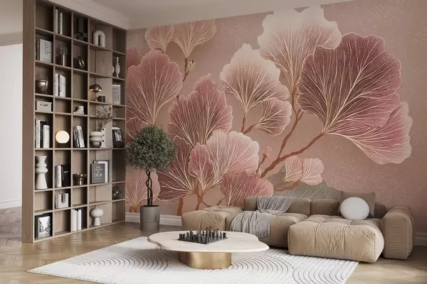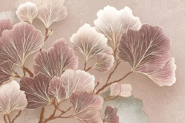 Fototapeten Zweig mit Blättern in rosa und violetten Farbtönen N° w09249