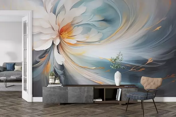 Fototapeten Abstrakte Blume in sanften Blau- und Orangetönen N° w09270