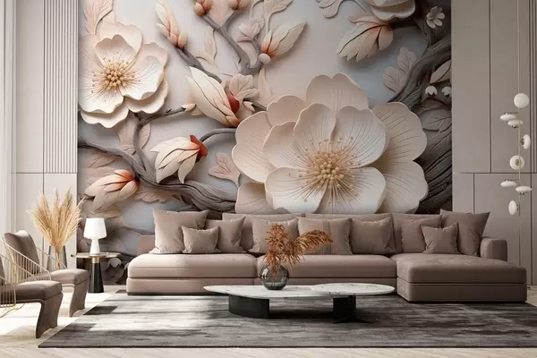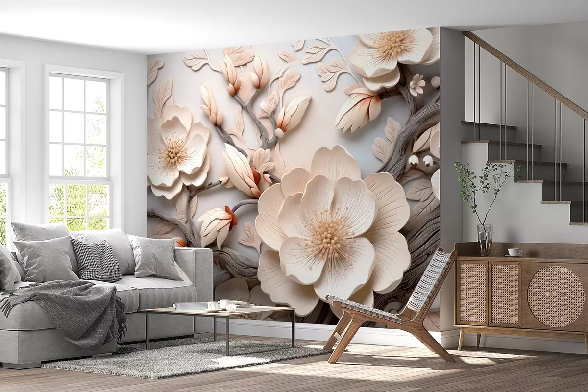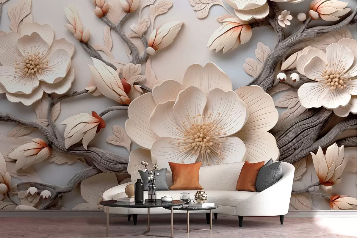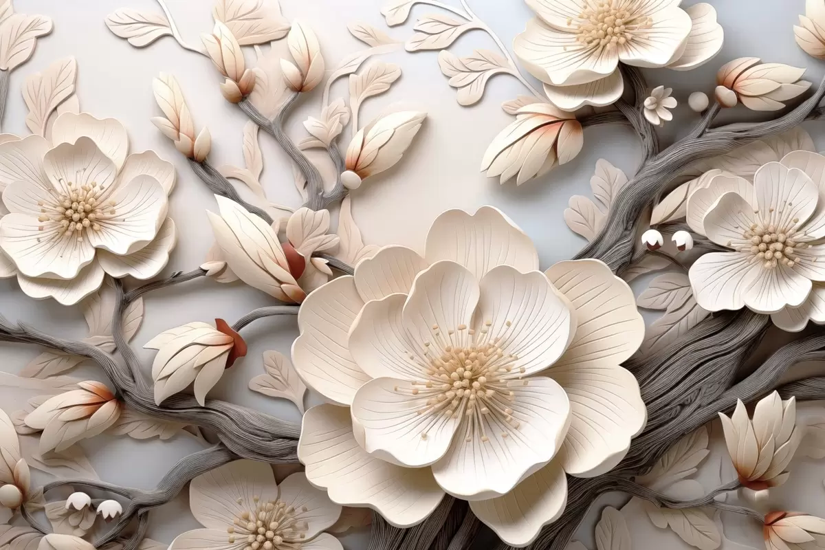 Fototapeten Volumetrische Blumen und Zweige in hellen Tönen N° w09272