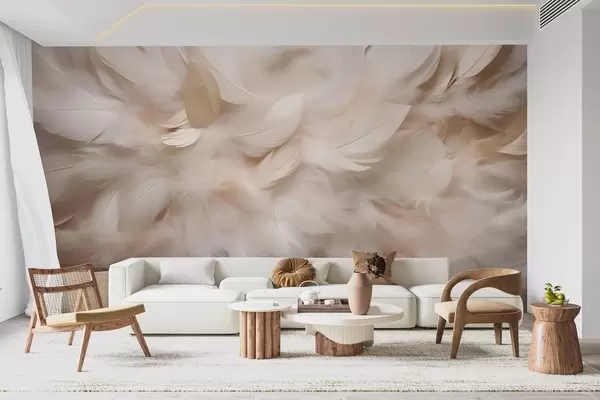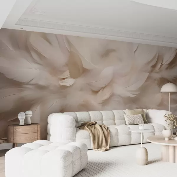 Fototapeten Flauschige Federn und Daunen in cremefarbenen Tönen N° w09274
