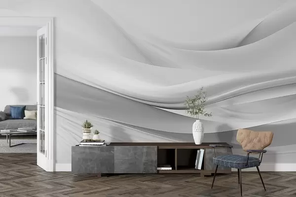 Fototapeten Graue Stoffwellen im minimalistischen abstrakten Stil N° w09279v1