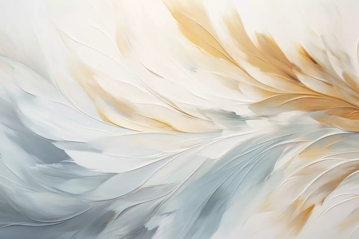Fototapeten Abstrakte Federn in sanften Blau- und Orangetönen N° w09283