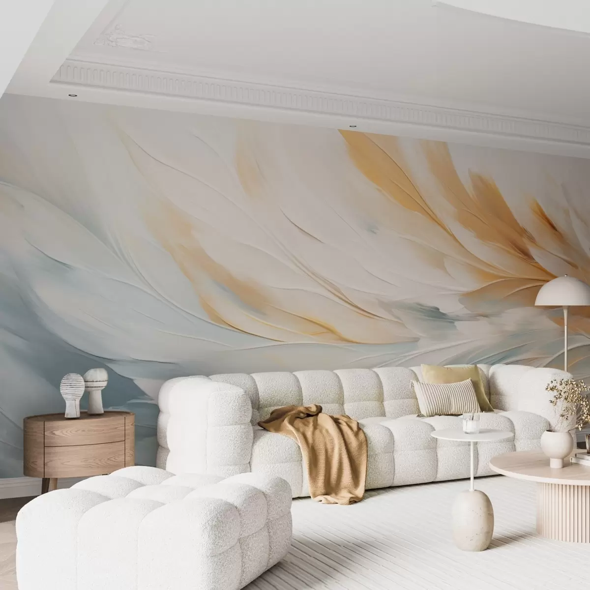 Fototapeten Abstrakte Federn in sanften Blau- und Orangetönen N° w09283