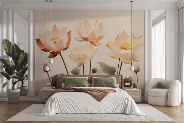 Fototapeten Elegante Lotusblumen in zarten Pastelltönen N° w09306