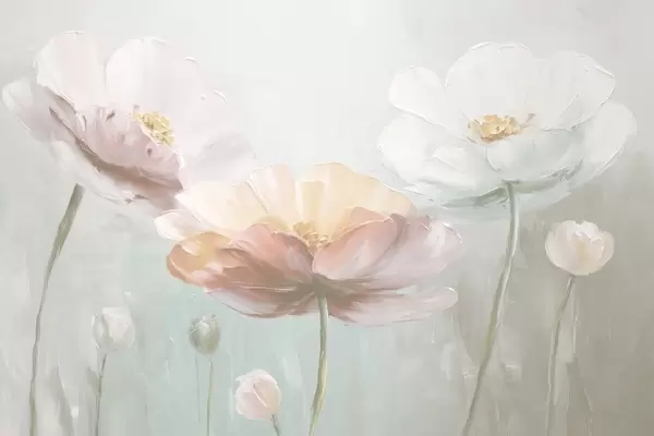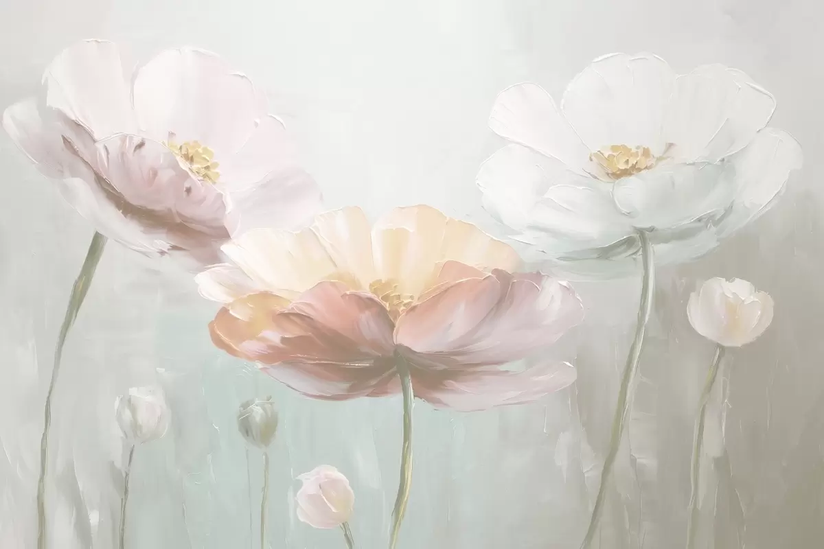 Fototapeten Volumetrische Pastellmohnblumen im Stil der Ölmalerei N° w09310v1